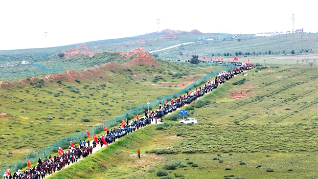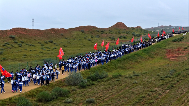 活動由點及線、以線成面、多方聯(lián)動,全程沿著中國戶外運動精品徒步線路——寧夏鹽池長城山地徒步廊道往返40公里,讓青年學子們在徒步行走中體驗革命先烈們的信念與忠誠,感悟革命先烈們的堅強意志,見證革命先烈們用熱血和汗水換取的光明大道和光榮歲月。