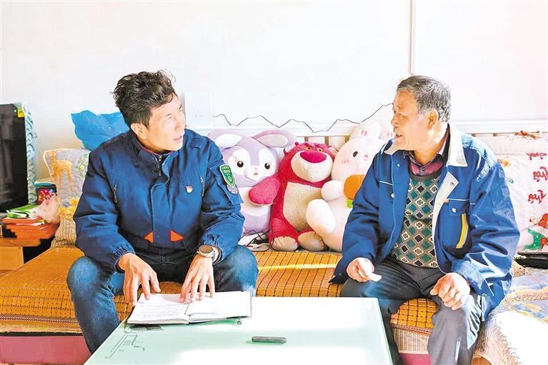 徐磊焱(左)到村民劉學(xué)功家走訪。