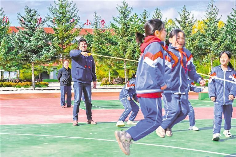 10月14日,在張易鎮(zhèn)紅莊小學(xué)的操場(chǎng)上,五年級(jí)的小羅與同學(xué)們圍成一圈做游戲,徐磊焱跑到圈中間問:“你們還記得我不?”“記得,您是送我們書包的徐老師!”小羅搶著說。