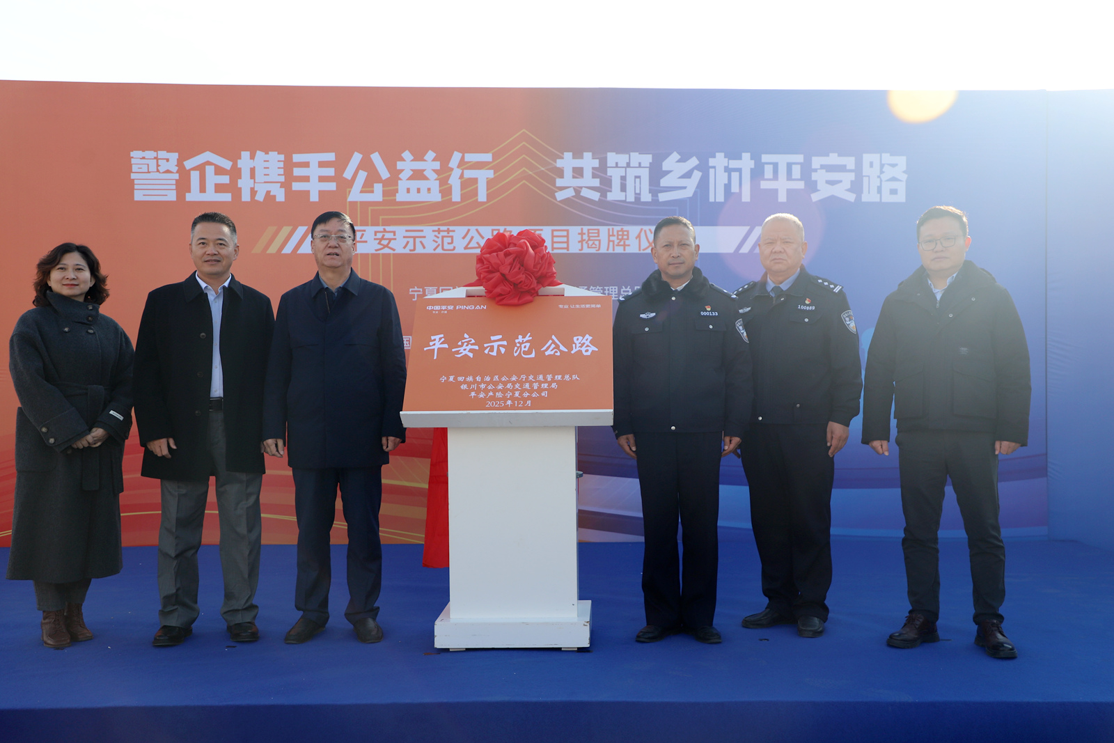 寧夏新聞網(wǎng)訊(記者 胡俊 文/圖)12月4日,寧夏區(qū)市縣三級(jí)公安交管部門聯(lián)合平安產(chǎn)險(xiǎn)寧夏分公司在銀川市興慶區(qū)掌政鎮(zhèn)孔雀村舉辦平安示范公路項(xiàng)目揭牌儀式。平安產(chǎn)險(xiǎn)寧夏分公司在寧夏公安廳交通管理總隊(duì)的指導(dǎo)下,會(huì)同銀川市公安局交通管理局,啟動(dòng)“平安守護(hù)者·道路交通安全風(fēng)險(xiǎn)減量”公益行動(dòng),開展農(nóng)村風(fēng)險(xiǎn)道路綜合治理及交通宣傳教育活動(dòng),為廣大群眾創(chuàng)造安全、安心的道路交通環(huán)境。