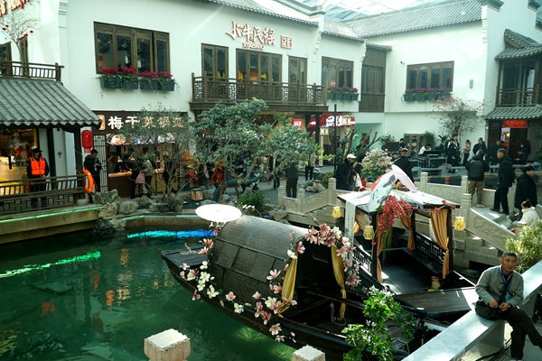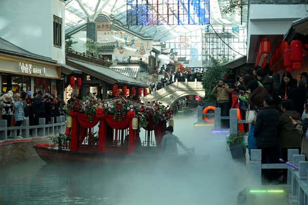 隨著鳴鑼聲響起,江南水街正式開街,嘉賓們逐一參觀了現(xiàn)場展示的非遺文創(chuàng)、農(nóng)特產(chǎn)品等優(yōu)質(zhì)成果;同步發(fā)布的第四季度促消費(fèi)活動(dòng)視頻,全面展現(xiàn)了興慶區(qū)激活消費(fèi)市場的扎實(shí)舉措。作為銀川首個(gè)配備全景天窗的室內(nèi)江南水街,1.4萬平方米的室內(nèi)主題空間內(nèi),黛瓦白墻映小橋,烏篷輕倚流水間。市民穿梭其中,沉浸式感受“不出西北,盡覽江南”的獨(dú)特韻味。這座城市級(jí)文商旅娛購體驗(yàn)中心,正為塞上古城注入全新消費(fèi)活力。