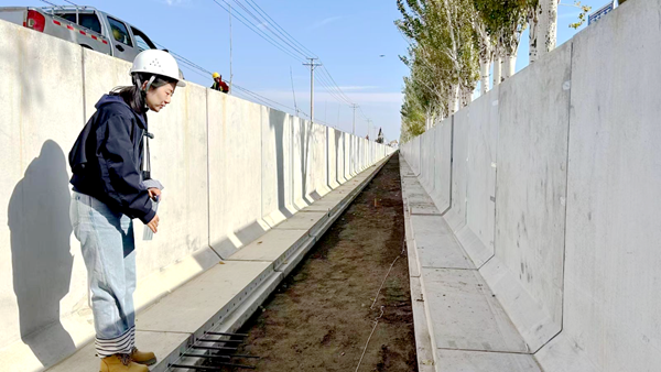 在暖泉渠施工現(xiàn)場,不見傳統(tǒng)工地支模澆筑的泥濘與忙亂,只見大型吊車將規(guī)整劃一的L型混凝土構(gòu)件輕巧地吊裝到位,工人們隨后進行精準拼接,工序流暢,現(xiàn)場整潔?!澳憧?,渠邊這些樹都不用砍伐了?!睂幭乃こ探ㄔO(shè)中心規(guī)劃計劃科工作人員鄒璇指著渠邊胸徑20厘米的楊樹介紹,這個“新神器”的應(yīng)用,實現(xiàn)了工程建設(shè)與生態(tài)保護、資源節(jié)約的協(xié)同。它通過工廠化預(yù)制,從源頭上確保了混凝土強度和外型精度,工程質(zhì)量遠勝傳統(tǒng)手工現(xiàn)澆,渠道壽命大幅提高,運行維護費用降低;構(gòu)件提前預(yù)制、現(xiàn)場拼裝,保護渠畔林木,更是將現(xiàn)場工期壓縮了約一半,極大緩解了施工組織壓力。