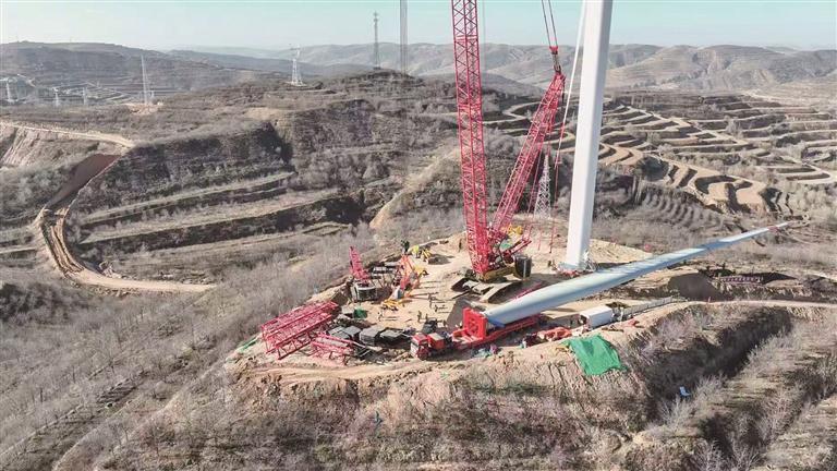 11月30日,隆德縣好水鄉(xiāng)國能寧湘直流配套固原100萬千瓦風電項目施工現(xiàn)場,風機塔筒巍然聳立,工人們緊張有序地開展風機葉片吊裝工作。據了解,該項目建成投產后,預計年發(fā)電量約3億千瓦時,跨區(qū)輸送至湖南,實現(xiàn)寧夏優(yōu)勢能源資源的開發(fā)與外送,促進綠色能源大范圍配置消納,具有良好的經濟效益和環(huán)保效益。同時,按火電煤耗301.5g/kWh折算,每年可節(jié)約標煤4.71萬噸,減排二氧化碳14.17萬噸、二氧化硫527噸、氮氧化物544噸、煙塵637噸,將顯著改善區(qū)域大氣環(huán)境質量。通訊員 黃天 張浩亮 攝