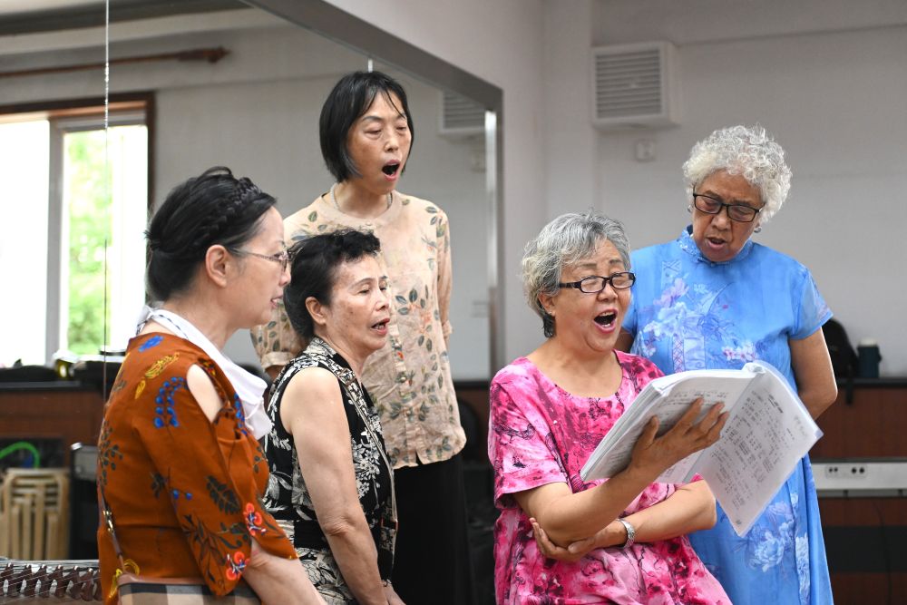 ??6月20日,寧夏銀川市金鳳區(qū)長(zhǎng)城花園社區(qū)居民在練習(xí)唱歌。