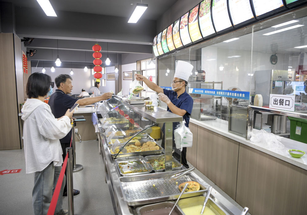 ??6月20日,寧夏銀川市金鳳區(qū)長(zhǎng)城花園社區(qū)居民在社區(qū)食堂買(mǎi)早餐。